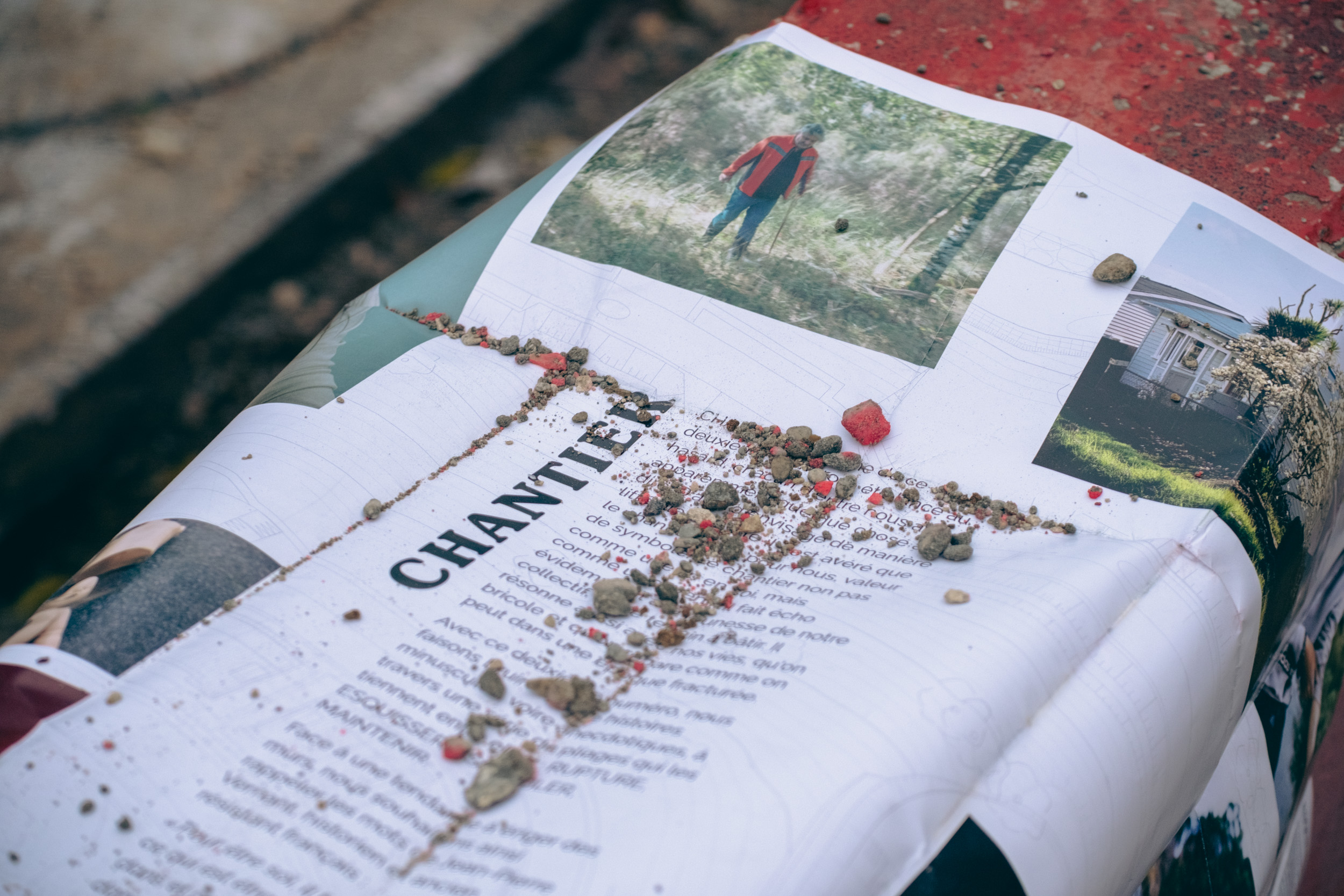 CHANTIER, le thème de ce deuxième numéro, a été lancé au hasard, chacun d'entre nous ayant apparemment quelque chose à en dire. D'abord envisagé de manière littérale, très vite il s'est avéré que le chantier avait, pour nous, valeur de symbole. Le chantier non pas comme une fin en soi, mais comme un devenir. Il fait écho évidemment à la jeunesse de notre collectif, notre terrain à bâtir. Il résonne aussi avec nos vies, qu'on bricole et qu'on répare comme on peut dans une époque fracturée.